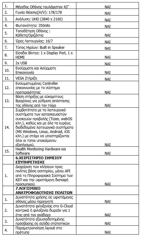 Περιλαμβάνει: Αποτύπωση αναγκών, καλωδιακής υποδομής και σημείων εξυπηρέτησης. Τοποθέτηση οθόνης σε τοίχο και καλωδίωση όπου κρίνεται απαραίτητο. Τοποθέτηση, εγκατάσταση και παραμετροποίηση εκδοτηρίου.