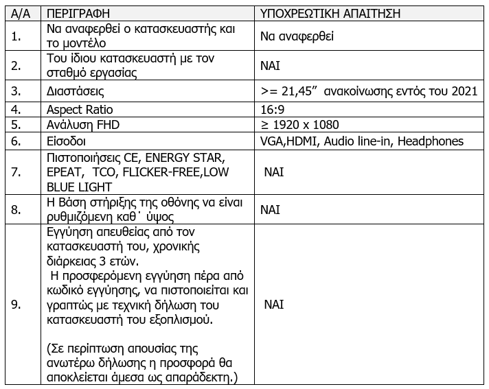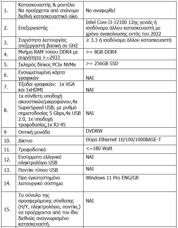 ΤΕΧΝΙΚΗ ΠΕΡΙΓΡΑΦΗ – ΠΡΟΤΕΙΝΟΜΕΝΕΣ ΠΡΟΔΙΑΓΡΑΦΕΣ