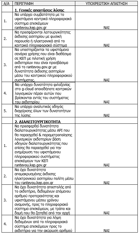 Περιλαμβάνει: Την παραμετροποίηση λογισμικού για την διαλειτουργικότητα με το κεντρικό πληροφοριακό σύστημα rantevou.kep.gov.gr