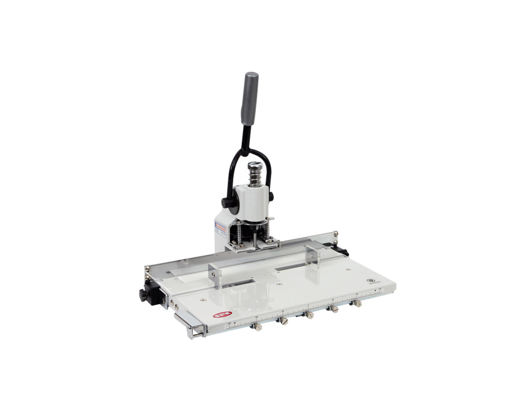 Επαγγελματικό διατρητικό μηχάνημα με δυνατότητα διάτρησης 300 φύλλα/φορά, οδηγό κοπής, με συρόμενο τραπεζάκι με πέντε μεταβλητούς οδηγούς, μεταβλητό βάθος τρυπήματος και δυνατότητα επιλογής διαφορετικών διαμέτρων drills (από 3mm έως 8mm).