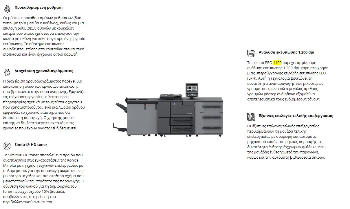 • Ταχύτητα Α/Μ παραγωγής 100 σελίδων A4 ή 55 σελίδων A3 ανά λεπτό, σε συνδυασμό με υψηλές επιδόσεις RIP για εξαιρετική παραγωγικότητα