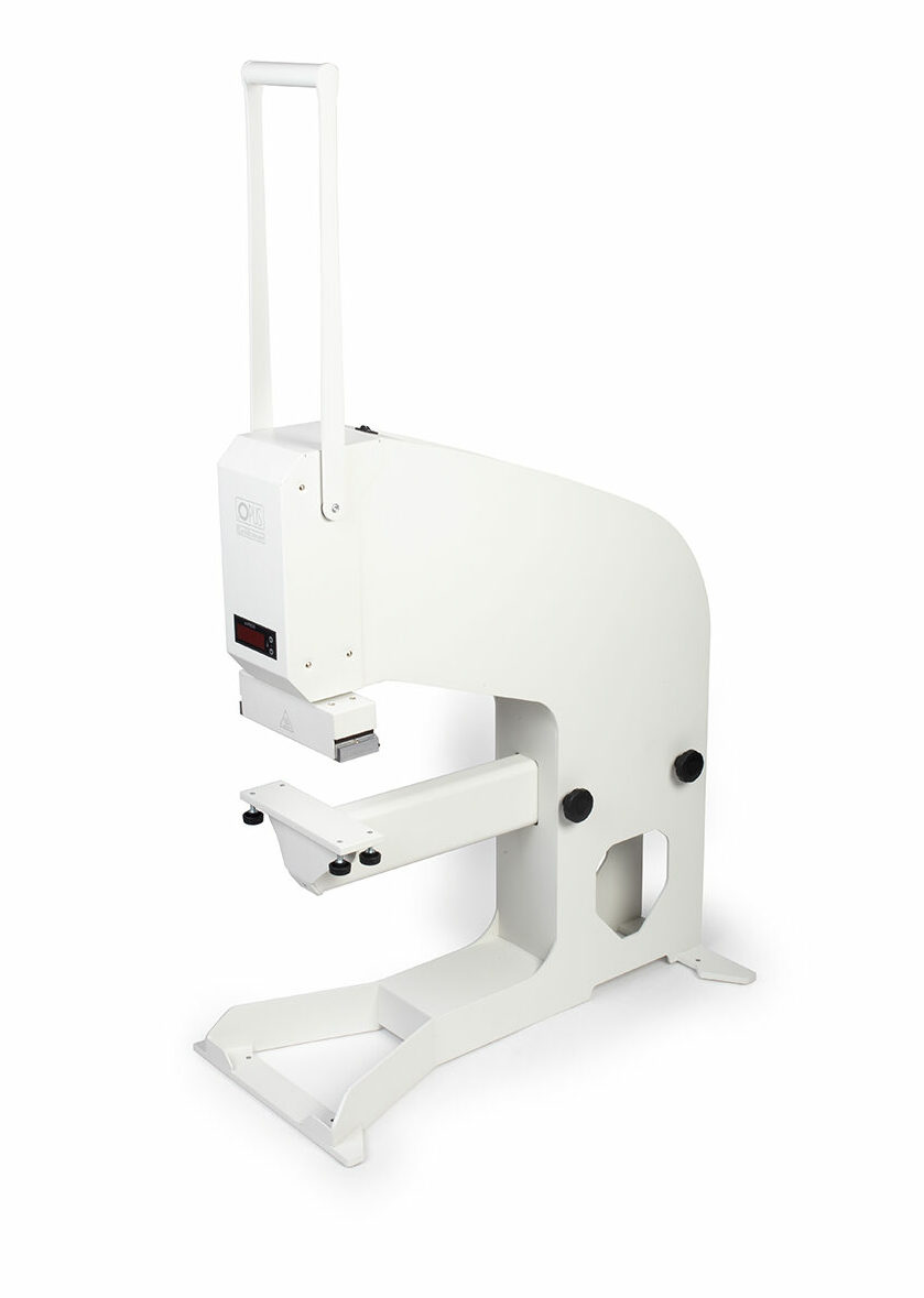 Επαγγελματικό, χειροκίνητο μηχάνημα χρυσοτυπίας – βαθυτυπίας ειδικού τύπου, για εκτύπωση σε ειδικές εφαρμογές και επιφάνειες, όπως κουτιά, τσάντες, παπούτσια και άλλα, με ανάλογη ειδική κατασκευή βάσης από την αντιπροσωπεία προσαρμοσμένη στην ζητούμενη εφαρμογή, με μέγιστη επιφάνεια εκτύπωσης 5 × 18cm, ρύθμιση θερμοκρασίας, ηλεκτρονικό display, δυνατότητα χρήσης καλουπιών και γραμμάτων και εξολοκλήρου στιβαρή μεταλλική κατασκευή