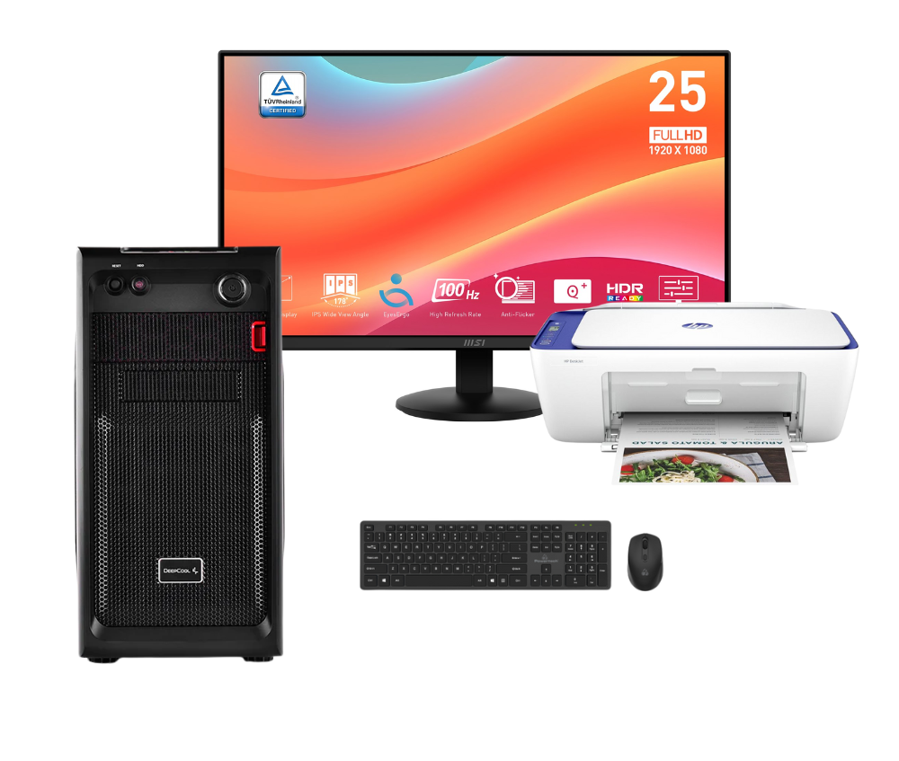 Vengeance Workspace-V2 Ryzen 5-3400G/ 8GB/ 240GB SSD/ No OS Gaming PC + MSI Pro MP252L monitor (24,5″) + HP DeskJet 2821e AiO 588Q2B